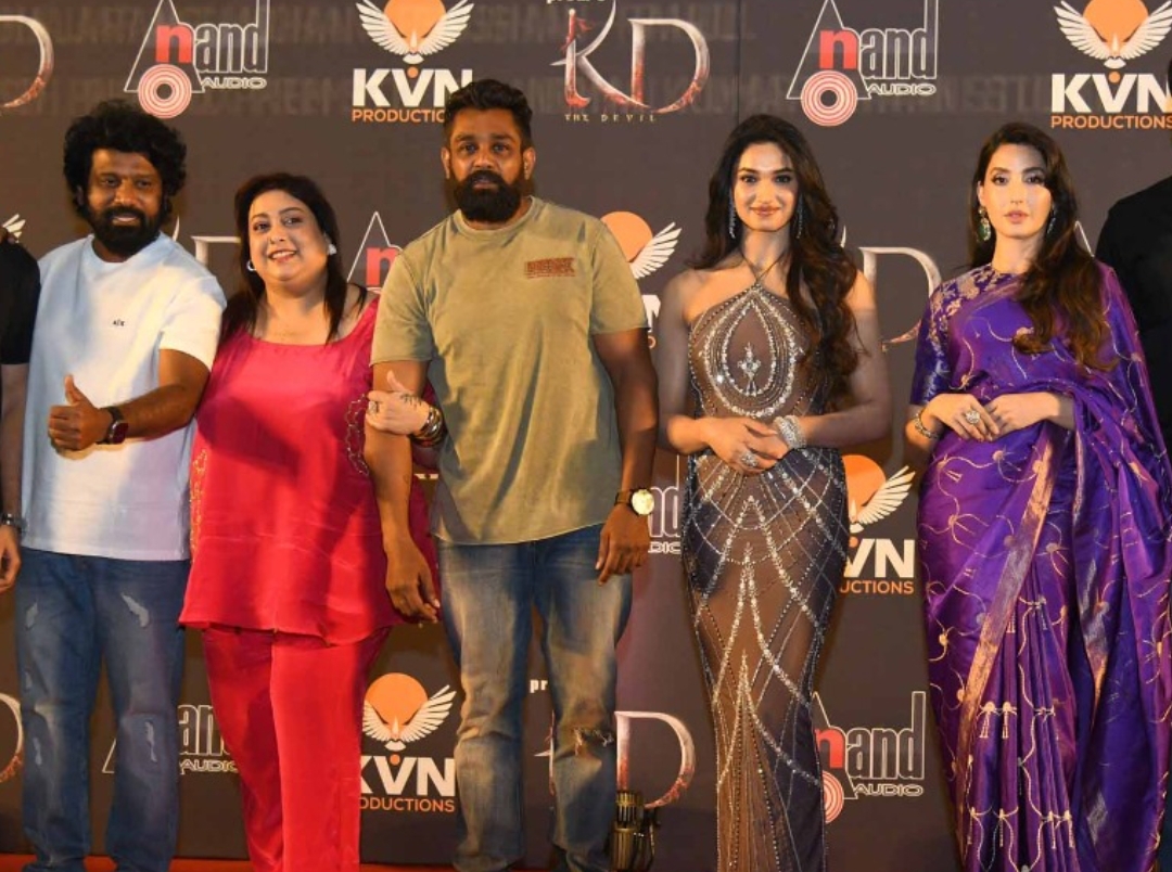 ಜೋಗಿ ಪ್ರೇಮ್ ನಿರ್ದೇಶನದ ಹಾಗೂ ಆಕ್ಷನ್ಪ್ರಿನ್ಸ್ ದ್ರುವ ಸರ್ಜಾ ನಟನೆಯ ಪ್ಯಾನ್ ಇಂಡಿಯಾ ಚಿತ್ರ ಕೆಡಿ. ಈ ವರ್ಷದ ಬಹು ನಿರೀಕ್ಷಿತ ಕೆಡಿ ಸಿನಿಮಾದ ನಾಲ್ಕನೇ ಹಾಡು ಸರ್ಸೇ ಸರ್ಸೇ ನಿನ್ನ ಸೆರಗಾ ಸರಿಸೇ ಎಂಬ ಡಾನ್ಸ್ ನಂಬರ್ ಹಾಡಿನ ಲಿರಿಕಲ್ ವಿಡಿಯೋ ಬಿಡುಗಡೆ ಕಾರ್ಯಕ್ರಮ ಶನಿವಾರ ಎ.ಎಂ.ಬಿ. ಸಿನಿಮಾಸ್ ನಲ್ಲಿ ನಡೆಯಿತು. ವೇದಿಕೆ ಮೇಲೆ ಸರ್ಸೇ ಹಾಡಲ್ಲಿ ಹೆಜ್ಜೆ ಹಾಕಿದ ಬಾಲಿವುಡ್ ನಟಿ ನೋರಾ ಫತೇಹಿ, ನಿರ್ದೇಶಕ ಪ್ರೇಮ್, ದ್ರುವ ಸರ್ಜಾ, ರಕ್ಷಿತಾಪ್ರೇಮ್, ನಾಯಕಿ ರೀಶ್ಮಾ ನಾಣಯ್ಯ, ಕಾರ್ಯಕಾರಿ ನಿರ್ಮಾಪಕ ಸುಪ್ರೀತ್ , ಆನಂದ್ ಆಡಿಯೋ ಶಾಮ್ ಕೆವಿಎನ್ ಪ್ರೊಡಕ್ಷನ್ಸ್ ನ ಸುಪ್ರೀತ್ ಸೇರಿದಂತೆ ಹಲವು ಪ್ರಮುಖ ಉಪಸ್ಥಿತರಿದ್ದರು.