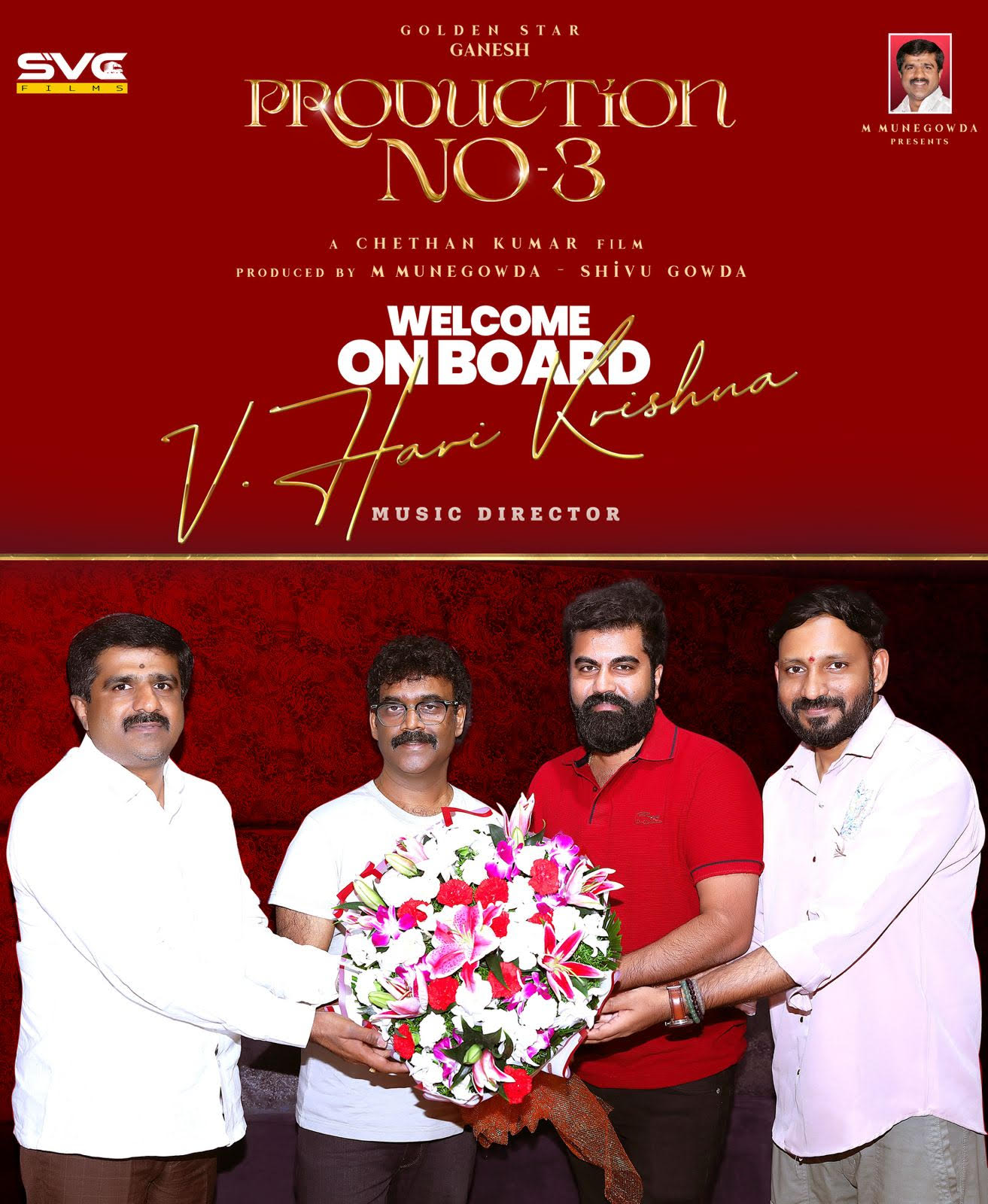 ಎಸ್ ವಿ ಸಿ ಫಿಲಂಸ್ ಲಾಂಛನದಲ್ಲಿ ಎಂ.ಮುನೇಗೌಡ ಅವರು ನಿರ್ಮಿಸುತ್ತಿರುವ “ಪ್ರೊಡಕ್ಷನ್ ನಂ 3” ಚಿತ್ರವನ್ನು “ಬಹದ್ದೂರ್”, “ಭರ್ಜರಿ “, “ಭರಾಟೆ”, “ಜೇಮ್ಸ್” ನಂತಹ ಸೂಪರ್ ಹಿಟ್ ಚಿತ್ರಗಳನ್ನು ನಿರ್ದೇಶಿಸಿರುವ ಚೇತನ್ ಕುಮಾರ್ ನಿರ್ದೇಶಿಸುತ್ತಿದ್ದಾರೆ. ತಮ್ಮ ಅಮೋಘ ಅಭಿನಯದ ಮೂಲಕ ಅಭಿಮಾನಿಗಳ ಮನ ಗೆದ್ದಿರುವ ಗೋಲ್ಡನ್ ಸ್ಟಾರ್ ಗಣೇಶ್ ಈ ಚಿತ್ರದ ನಾಯಕರಾಗಿ ನಟಿಸುತ್ತಿದ್ದಾರೆ. ಸದ್ಯದಲ್ಲೇ ಚಿತ್ರೀಕರಣ ಆರಂಭವಾಗಲಿರುವ ಈ ನೂತನ ಚಿತ್ರಕ್ಕೆ ಖ್ಯಾತ ಸಂಗೀತ ನಿರ್ದೇಶಕ ವಿ.ಹರಿಕೃಷ್ಣ ಸಂಗೀತ ನೀಡಲಿದ್ದಾರೆ. ಗಣೇಶ್, ಚೇತನ್ ಕುಮಾರ್ ಹಾಗೂ ವಿ.ಹರಿಕೃಷ್ಣ ಅವರ ಕಾಂಬಿನೇಶನ್ ಅಂದ ಮೇಲೆ ಅಭಿಮಾನಿಗಳಿಗೆ ಹಾಡುಗಳ ಬಗ್ಗೆ ಸಾಕಷ್ಟು ನಿರೀಕ್ಷೆ ಇರುತ್ತದೆ.
