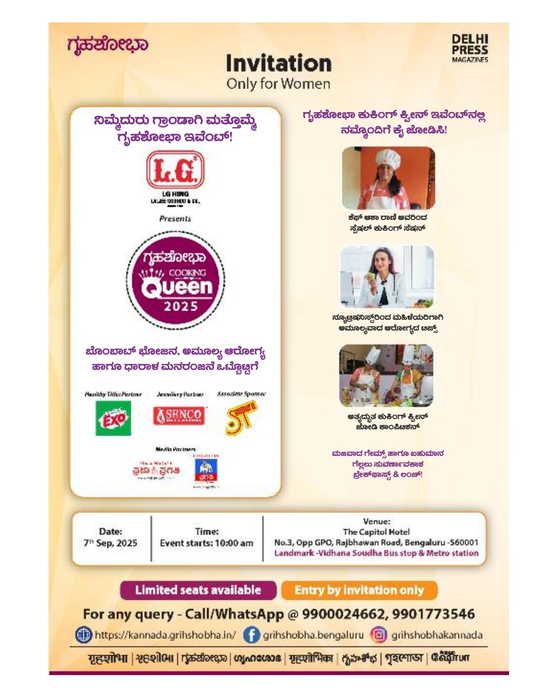 ಸಮಸ್ತ ಓದುಗರಿಗೂ ಗೃಹಶೋಭಾ ಪತ್ರಿಕೆ ವತಿಯಿಂದ ಆತ್ಮೀಯ ಭಾವಪೂರ್ಣ ನಮಸ್ಕಾರ….