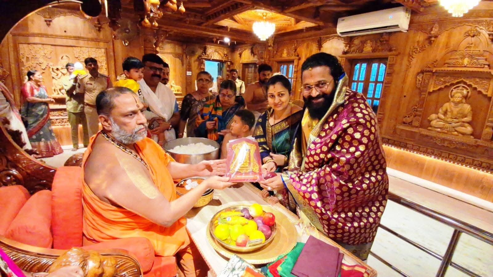 ಕುಟುಂಬಸ್ಥರು ಮೊದಲು ಗ್ರಾಮದ ಆದಿದೇವತೆ ಶ್ರೀಮಾಂಚಲಮ್ಮ ದೇವಾಲಯಕ್ಕೆ ತೆರಳಿ, ದೇವಿ ದರ್ಶನ ಪಡೆದುಕೊಂಡರು. ಬಳಿಕ, ಶ್ರೀರಾಘವೇಂದ್ರ ಸ್ವಾಮಿಯ ಮೂಲ ಬೃಂದಾವನದ ದರ್ಶನ ಮಾಡಿ, ವಿಶೇಷ ಪೂಜೆ ನೆರವೇರಿಸಿದರು. ನಂತರ, ಶ್ರೀಮಠದ ಪೀಠಾಧಿಪತಿ ಶ್ರೀ ಸುಬುಧೇಂದ್ರ ತೀರ್ಥರನ್ನು ಭೇಟಿಯಾಗಿ, ಉಭಯ ಕುಶಲೋಪರಿ ವಿಚಾರಿಸಿದರು.