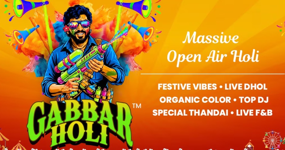 ಗಬ್ಬರ್ ಹೋಳಿ ಓಪನ್-ಏರ್ ಸಂಭ್ರಮವಾಗಿದ್ದು, ಲೈವ್ DJs, ಬಾಲಿವುಡ್, EDM ಮತ್ತು ಪಂಜಾಬಿ ಬೀಟ್ಸ್, ಪೂಲ್ ಪಾರ್ಟಿ ಹಾಗೂ ರೇನ್ ಡ್ಯಾನ್ಸ್ ಜೋನ್ ಇರಲಿದೆ. ಸ್ಥಳ: ಐವಿ ರೋಸಾ ರೆಸಾರ್ಟ್, ಸರ್ಜಾಪುರ, ಬೆಂಗಳೂರು. ಸಮಯ: ಬುಧವಾರ, ಮಾರ್ಚ್ 4, 2026 ಬೆಳಗ್ಗೆ 11:00 ಗಂಟೆಗೆ
