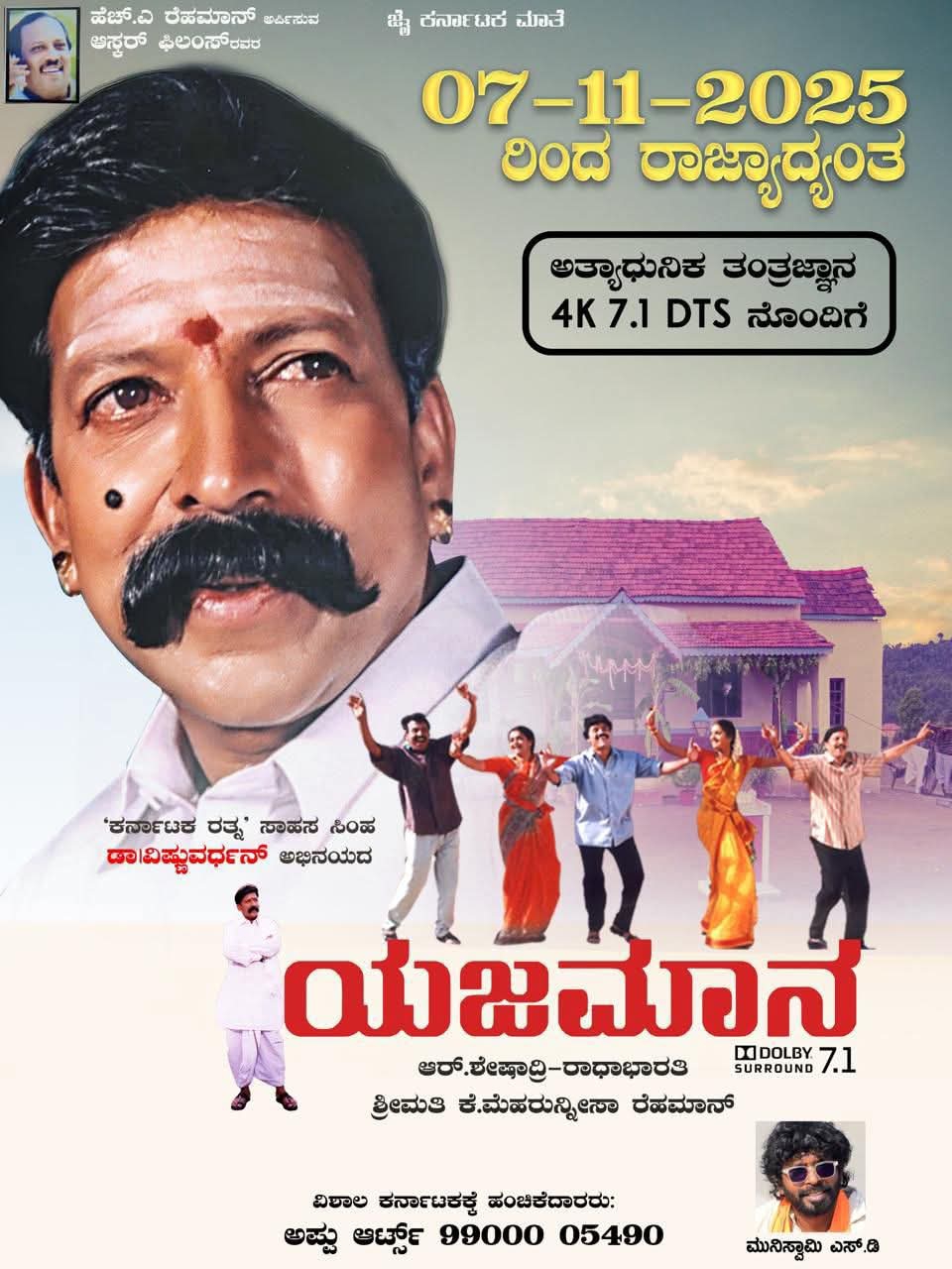 ವಿಷ್ಣುವರ್ಧನ್ ಅವರ ಸಾರ್ವಕಾಲಿಕ ದಾಖಲೆ ಮಾಡಿರುವ ಯಜಮಾನ ಚಿತ್ರ ಮರು ಬಿಡುಗಡೆ.