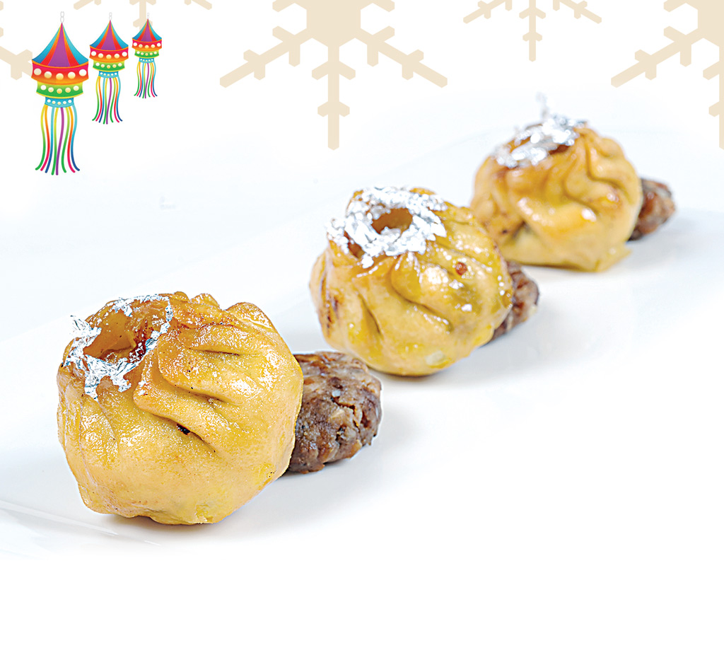 ವಿಧಾನ : ಒಂದು ಬೇಸನ್ನಿಗೆ ಮೈದಾ, ಸಕ್ಕರೆ, ತುಸು ತುಸುವೇ ಹಾಲು ಚಿಮುಕಿಸುತ್ತಾ ಮೃದು ಪೂರಿ ಹಿಟ್ಟಿನ ಹದಕ್ಕೆ ಕಲಸಿಡಿ. ಇದಕ್ಕೆ ತುಪ್ಪ ಬೆರೆಸಿ ಹದನಾಗಿ ನಾದಿಕೊಳ್ಳಿ, ನೆನೆಯಲು ಬಿಡಿ. ಒಂದು ಸಣ್ಣ ಬಾಣಲೆಯಲ್ಲಿ ತುಸು ತುಪ್ಪ ಬಿಸಿ ಮಾಡಿ. ಇದಕ್ಕೆ ಮಸೆದ ಖೋವಾ, ಖರ್ಜೂರದ ಪೇಸ್ಟ್, ಸಕ್ಕರೆ ಹಾಕಿ ಮಂದ ಉರಿಯಲ್ಲಿ ಕೆದಕಬೇಕು. ನಂತರ ಇದಕ್ಕೆ ಏಲಕ್ಕಿ, ದ್ರಾಕ್ಷಿ, ಗೋಡಂಬಿ ಚೂರು, ಕೇಸರಿ ಬೆರೆಸಿಕೊಳ್ಳಿ. ಇದನ್ನು 2 ನಿಮಿಷ ಕೆದಕಿ ಕೆಳಗಿಳಿಸಿ ಆರಲು ಬಿಡಿ, ಇದೀಗ ಹೂರಣ ರೆಡಿ! ನೆನೆದ ಹಿಟ್ಟಿನಿಂದ ಸಣ್ಣ ಉಂಡೆಗಳಾಗಿಸಿ, ಪುಟ್ಟ ಪೂರಿ ಲಟ್ಟಿಸಿ. ಇದರ ಮಧ್ಯೆ 1-2 ಚಮಚ ಹೂರಣವಿರಿಸಿ, ಮೋದಕಕ್ಕೆ ಮಾಡುವಂತೆ ಎಲ್ಲಾ ಕಡೆಯಿಂದಲೂ ಕವರ್ ಮಾಡಿ, ಚಿತ್ರದಲ್ಲಿರುವಂತೆ ಡಿಸೈನ್ ಮಾಡಿ. ಹೀಗೆ ಎಲ್ಲವನ್ನೂ ಸಿದ್ಧಪಡಿಸಿಕೊಂಡು ಕಾದ ಎಣ್ಣೆಯಲ್ಲಿ ಕರಿದು ತೆಗೆಯಿರಿ. ಅರ್ಧ ಕಪ್ ನೀರನ್ನು ಬಿಸಿ ಮಾಡಿ, ಅದಕ್ಕೆ ಸಕ್ಕರೆ ಹಾಕಿ ಒಂದೆಳೆ ಗಟ್ಟಿ ಪಾಕ ಸಿದ್ಧಪಡಿಸಿ. ಅದನ್ನು ಇದರ ಮೇಲೆ ಲೈಟಾಗಿ ಸುರಿದು, ಪಾಕ ಮೆತ್ತಿಕೊಳ್ಳುವಂತೆ ಮಾಡಿ. ನಂತರ ಚಿತ್ರದಲ್ಲಿರುವಂತೆ ಬೆಳ್ಳಿ ರೇಕಿನಿಂದ ಅಲಂಕರಿಸಿ, ಗಾಳಿಯಾಡದ ಡಬ್ಬಕ್ಕೆ ತುಂಬಿರಿಸಿ. ಹಬ್ಬಕ್ಕೆ 2 ದಿನ ಇರುವಾಗಲೇ ಇದನ್ನು ಸಿದ್ಧಪಡಿಸಿಕೊಳ್ಳಿ.