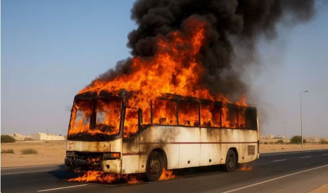 ಮೆಕ್ಕಾದಿಂದ ಮದೀನಾಕ್ಕೆ ತೆರಳುತ್ತಿದ್ದ ಬಸ್ ಡೀಸೆಲ್ ಟ್ಯಾಂಕರ್ಗೆ ಡಿಕ್ಕಿ ಹೊಡೆದು ಸುಮಾರು 42 ಪ್ರಯಾಣಿಕರು ಮೃತಪಟ್ಟಿದ್ದಾರೆ ಮುಂದು ಮೂಲಗಳು ತಿಳಿಸಿವೆ. ನವೆಂಬರ್ 17ರ ಮುಂಜಾನೆ 1:30ರ ಸುಮಾರಿಗೆ ಮುಫ್ರಿಹತ್ನಲ್ಲಿ ಈ ಭೀಕರ ಅಪಘಾತ ನಡೆದಿದೆ.