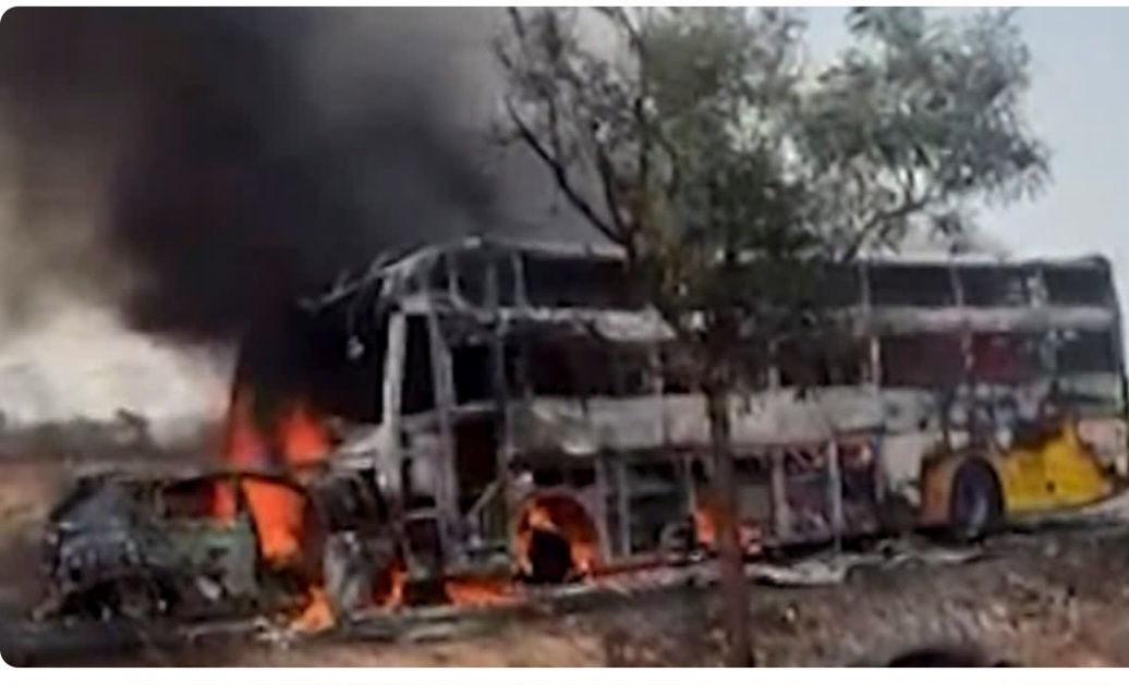 ಡಿಕ್ಕಿಯ ತೀವ್ರತೆಯಿಂದ ಕಾರಿನಲ್ಲಿ ಪ್ರಯಾಣಿಸುತ್ತಿದ್ದ 7 ಜನರು ಬೆಂಕಿಗಾಹುತಿಯಾಗಿ ಸಜೀವ ದಹನಗೊಂಡಿದ್ದಾರೆ ಎಂಬ ಮಾಹಿತಿ ಲಭ್ಯವಾಗಿದೆ. ಅಪಘಾತದ ಬಳಿಕ ಬಸ್ ಹಾಗೂ ಕಾರು ಎರಡೂ ಬೆಂಕಿಗೆ ಆಹುತಿಯಾಗಿ ಸಂಪೂರ್ಣ ಸುಟ್ಟು ಕರಕಲಾಗಿದೆ.