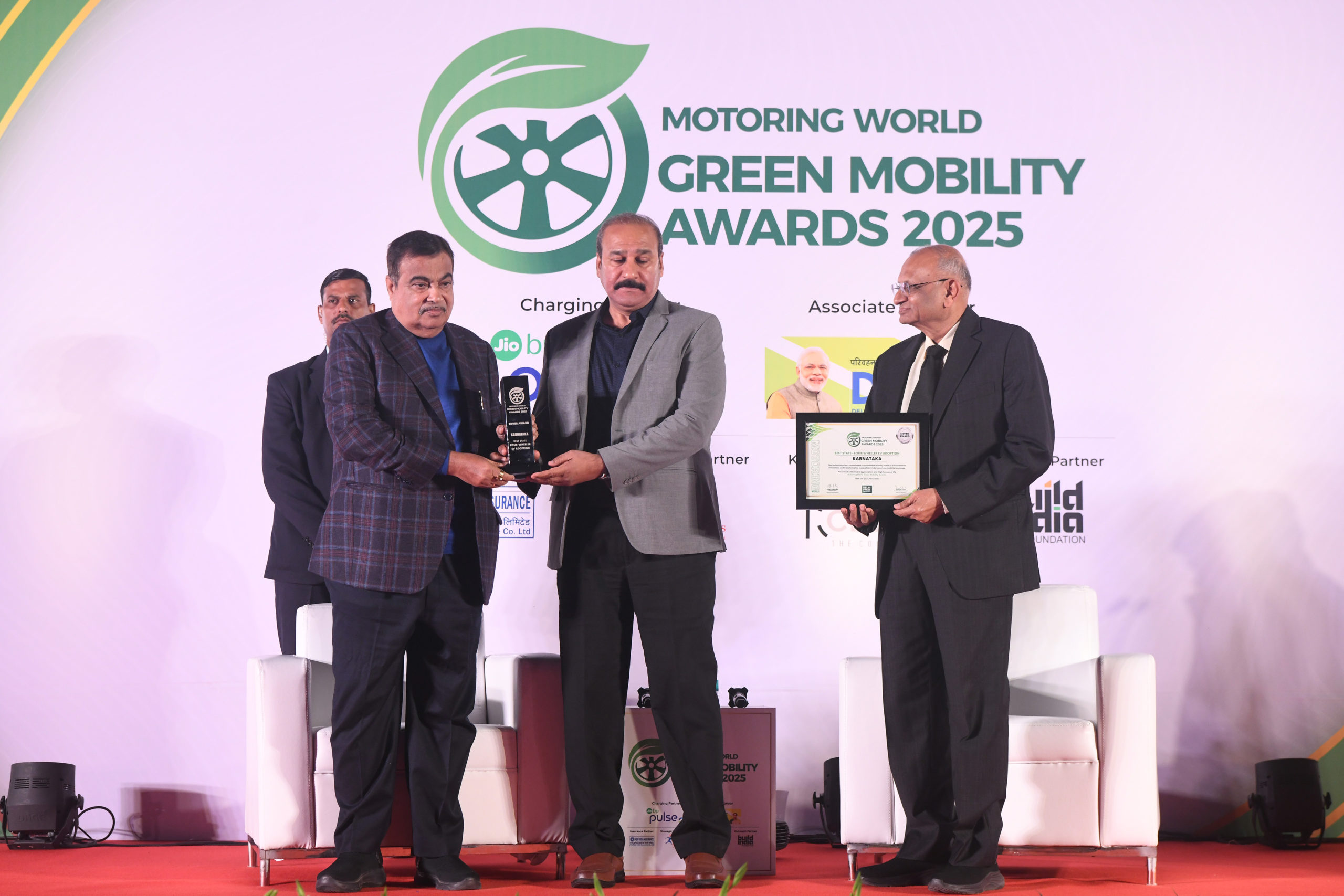 ಮೋಟರ್ ವರ್ಲ್ಡ್ಗ್ರೀನ್ಮೊಬಿಲಿಟಿಅವಾರ್ಡ್ಸ್ -2025 ಇವಿಮೂಲಸೌಕರ್ಯಮತ್ತುಅಳವಡಿಕೆಗಾಗಿಕರ್ನಾಟಕಕ್ಕೆಮಾನ್ಯತೆ