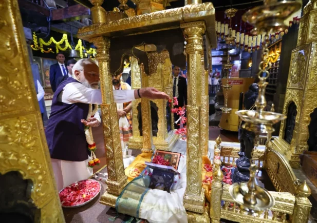 ಉಡುಪಿ ಪುತ್ತಿಗೆ ಮಠದ ಶ್ರೀಗಳು, ಪ್ರಧಾನಿಗೆ ಪೇಟ ತೊಡಿಸಿ, ಶಾಲು ಮತ್ತು ತುಳಸಿಮಣಿ ಸರವನ್ನು ಹಾಕಿ, ಕೃಷ್ಣನ ನವಿಲು ಇರುವ ಕಿರೀಟ, ಬೆಳ್ಳಿಯ ಕಡಗೋಲು ಅನ್ನು ನೀಡಿದರು. ಎಲ್ಲರಿಗೂ ನಮಸ್ಕಾರ ಎಂದು ಕನ್ನಡದಲ್ಲಿ ಭಾಷಣ ಆರಂಭಿಸಿದ ಪ್ರಧಾನಿ ಮೋದಿ, ಅಯೋಧ್ಯೆ ರಾಮ ಮಂದಿರದ ಒಂದು ದ್ವಾರಕ್ಕೆ ಆಚಾರ್ಯ ಮಧ್ವರ ಹೆಸರನ್ನು ಇಡಲಾಗಿದೆ ಎಂದು ಹೇಳಿದರು.