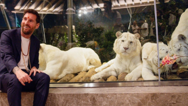 ಭಾರತದ ಭೇಟಿ ಸಂದರ್ಭ ಜಾಗತಿಕ ಪುಟ್ಬಾಲ್​ ದಂತಕತೆ ಲಿಯೊನೆಲ್​ ಮೆಸ್ಸಿ ಗುಜರಾತ್​ನ ಜಾಮ್​ನಗರದ ವನ್ಯಜೀವಿ ರಕ್ಷಣೆ, ಪುನರ್ವಸತಿ ಹಾಗೂ ಸಂರಕ್ಷಣೆ ಕೇಂದ್ರವಾದ ವಂತಾರಕ್ಕೆ ಭೇಟಿ ನೀಡಿದ್ದರು. ಈ ಸಂದರ್ಭ ವಂತಾರ ಸಂಸ್ಥಾಪಕ ಅನಂತ್‌ ಅಂಬಾನಿ ಹಾಗೂ ರಾಧಿಕಾ ಮರ್ಚಂಟ್‌ ಆತ್ಮೀಯವಾಗಿ ಬರ ಮಾಡಿಕೊಂಡಿದ್ದಾರೆ.