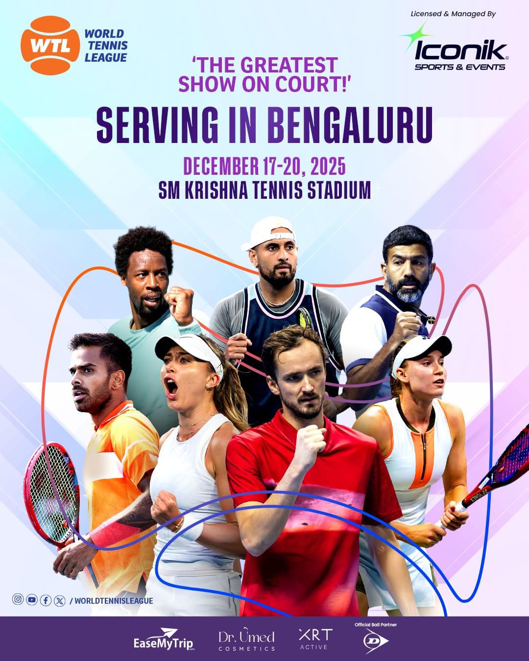 ಮೂರು ಸೀಸನ್ಗಳ ಕಾಲ UAEಯಲ್ಲಿ ಪ್ರೇಕ್ಷಕರನ್ನು ರಂಜಿಸಿದ ನಂತರ, ಐಕಾನಿಕ್ ಸ್ಪೋರ್ಟ್ಸ್ ಅಂಡ್ ಈವೆಂಟ್ ಲಿಮಿಟೆಡ್ ನಿರ್ವಹಿಸುವ ವರ್ಲ್ಡ್ ಟೆನಿಸ್ ಲೀಗ್ (WTL) ಮುಂದಿನ ತಿಂಗಳು ಭಾರತದಲ್ಲಿ ಮೊದಲ ಬಾರಿ ನಡೆಯಲಿದೆ. ಡಿಸೆಂಬರ್ 17ರಿಂದ 20ರ ವರೆಗೆ ನಡೆಯಲಿರುವ ಈ ನಾಲ್ಕು ದಿನಗಳ ಟೂರ್ನಿಗೆ ಕರ್ನಾಟಕ ರಾಜ್ಯ ಲಾನ್ ಟೆನಿಸ್ ಅಸೋಸಿಯೇಶನ್ ಮಾಲೀಕತ್ವದ ಪ್ರಖ್ಯಾತ ಎಸ್.ಎಂ. ಕೃಷ್ಣ ಟೆನಿಸ್ ಸ್ಟೇಡಿಯಂನಲ್ಲಿ ನಡೆಯಲಿದೆ.